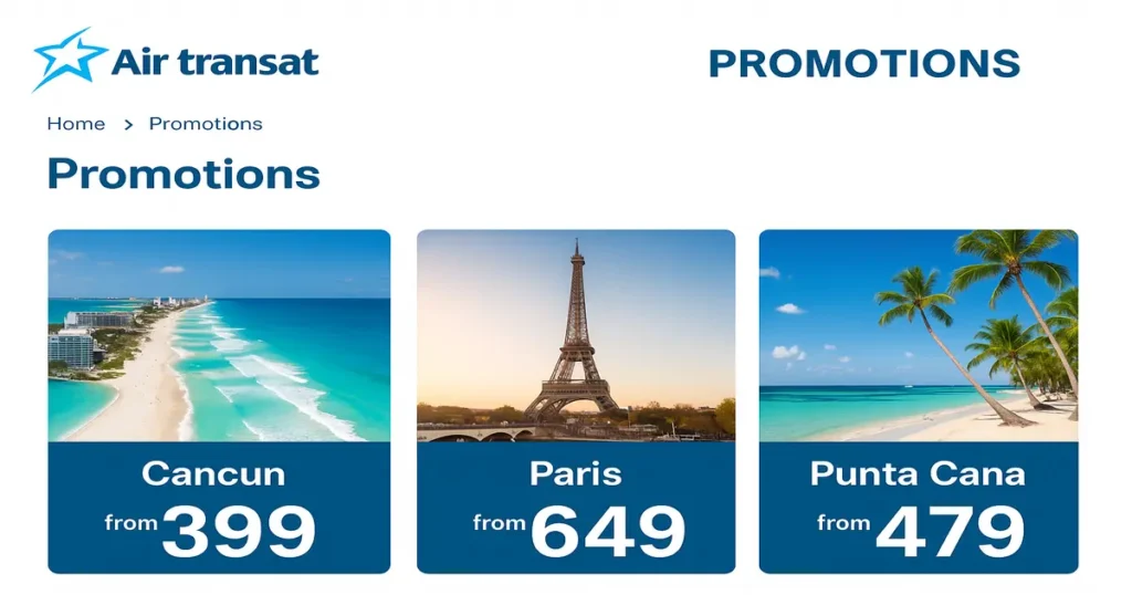 The best way to stay current? Air Transat’s official website has a dedicated promotions page that updates weekly. But we’ll get into better tracking methods shortly.